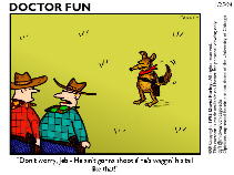 "Don't worry, Jeb - He ain't gonna shoot if he's waggin' his tail like that!"