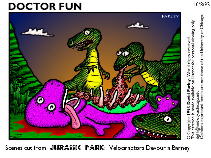 Scenes cut from "Jurassic Park:" Velociraptors Devour a Barney