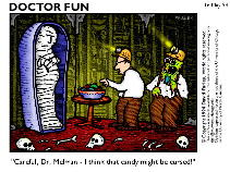 "Careful, Dr. Melman - I think that candy might be cursed!"