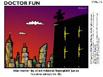 After another day of old-fashioned finger-pickin' justice, Banjoman surveys the city.