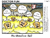 Each morning the lumberjacks drew straws to see whose turn it was to give an aging Paul Bunyan his Preparation-H