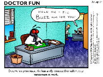 Despite his promotion, the human fly continued to suffer petty harassment at work.