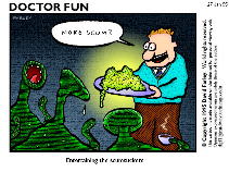 A horrifying moment at the state dinner in Toyland when an exhausted Santa Claus begins to vomit on the Easter Bunny and falls into a brief faint.