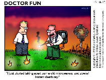 "I just started taking apart some old microwaves, and zowie! Instant death ray!"