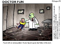 Face with an unruly patient, Doctor Spock applies his Vulcan child pinch.